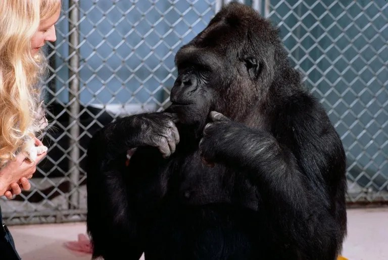Koko est un gorille femelle âgée de 7 ans . Elle est affectueuse, bavarde, joueuse elle adore les câlins, les chatouilles et les chats …